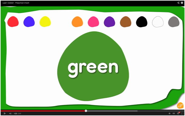 POPIS: Video 2:18, pieseň What colours do you like. Najprv sú rôzne kreslené obrázky z prírody, neskôr sú farby aj s napísaným slovom.