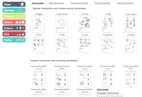 POPIS: Po kliknutí na číslo stránky hore sa rozbalí pracovný list, na ktorom je číslo a slovo, ktoré je potrebné obtiahnuť a vyfarbiť. Pri výbere vľavo sú v ponuke aj ďalšie pracovné listy.